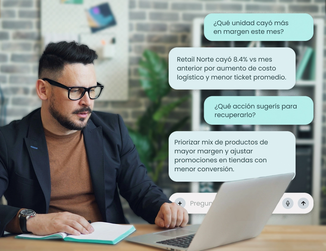 Nueva experiencia para que líderes y equipos consulten métricas en lenguaje natural, con respuestas explicables y accionables.